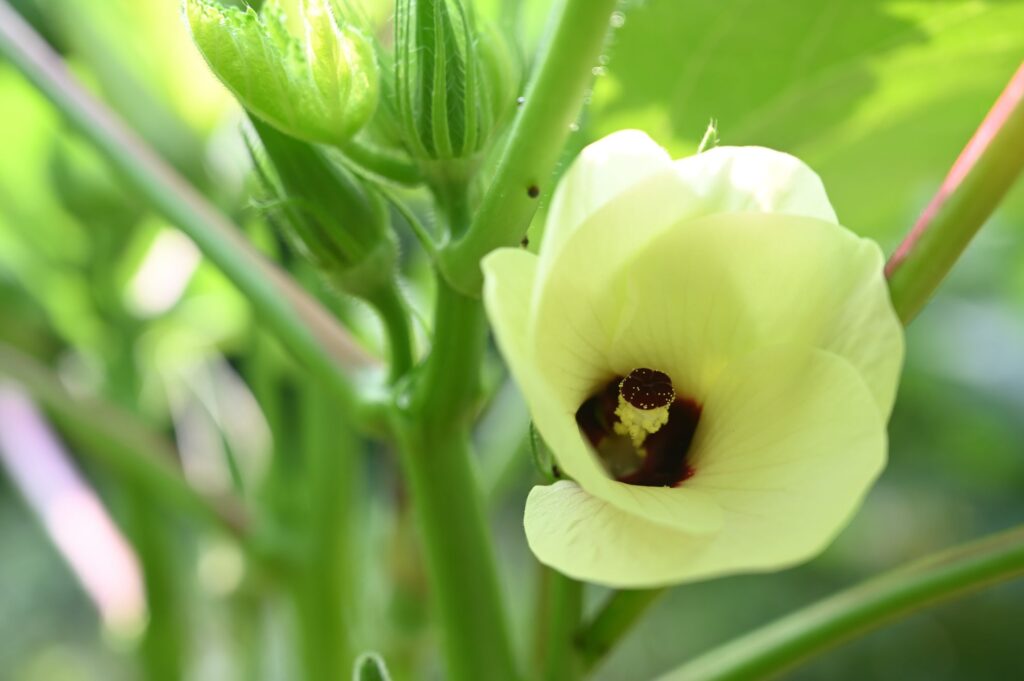 オクラの花を観察
