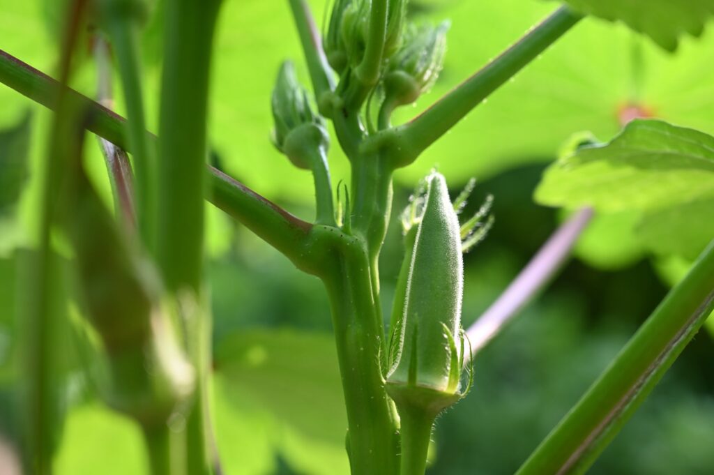露地栽培をしている固定種のオクラ「エメラルド」を初収穫しました。